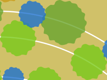 Les arbres sont positionnés sur des cercles dont les écartement ont été calculés pour laisser suffisamment d’espace pour circuler, pour permettre aux arbres de pousser naturellement tout en laissant des zones suffisamment ensoleillées pour faire pousser des légumes perpétuels.
